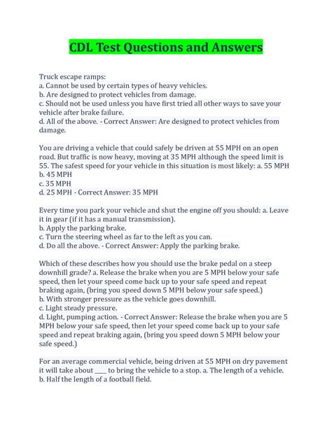 Read Online Free Cdl Tests And Answers Kindle Editon