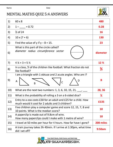 Download Year 5 Maths Test Answers Doc