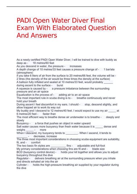 Read Online Padi Test Answers Open Water Reader